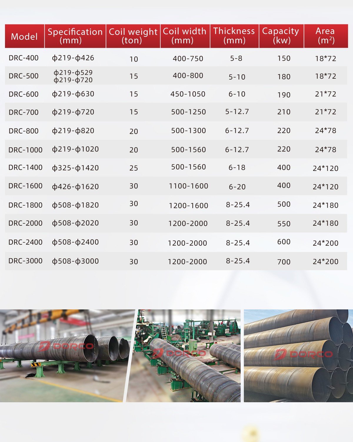 The spiral welded pipe production line of Dolco Heavy Industry is a mature unit after years of practice and improvement, which has the advantages of stable forming, high automation, low energy consumption and high production efficiency.
